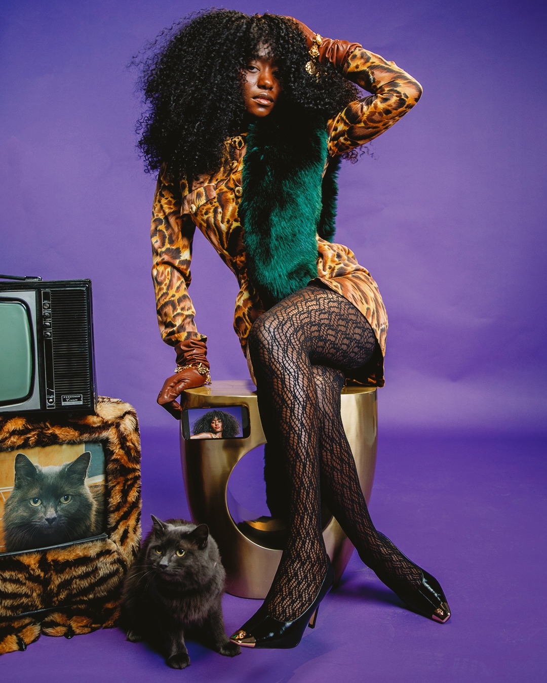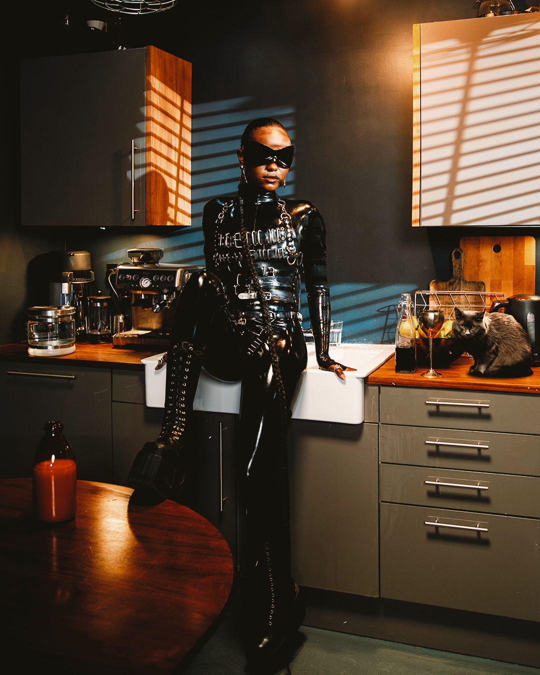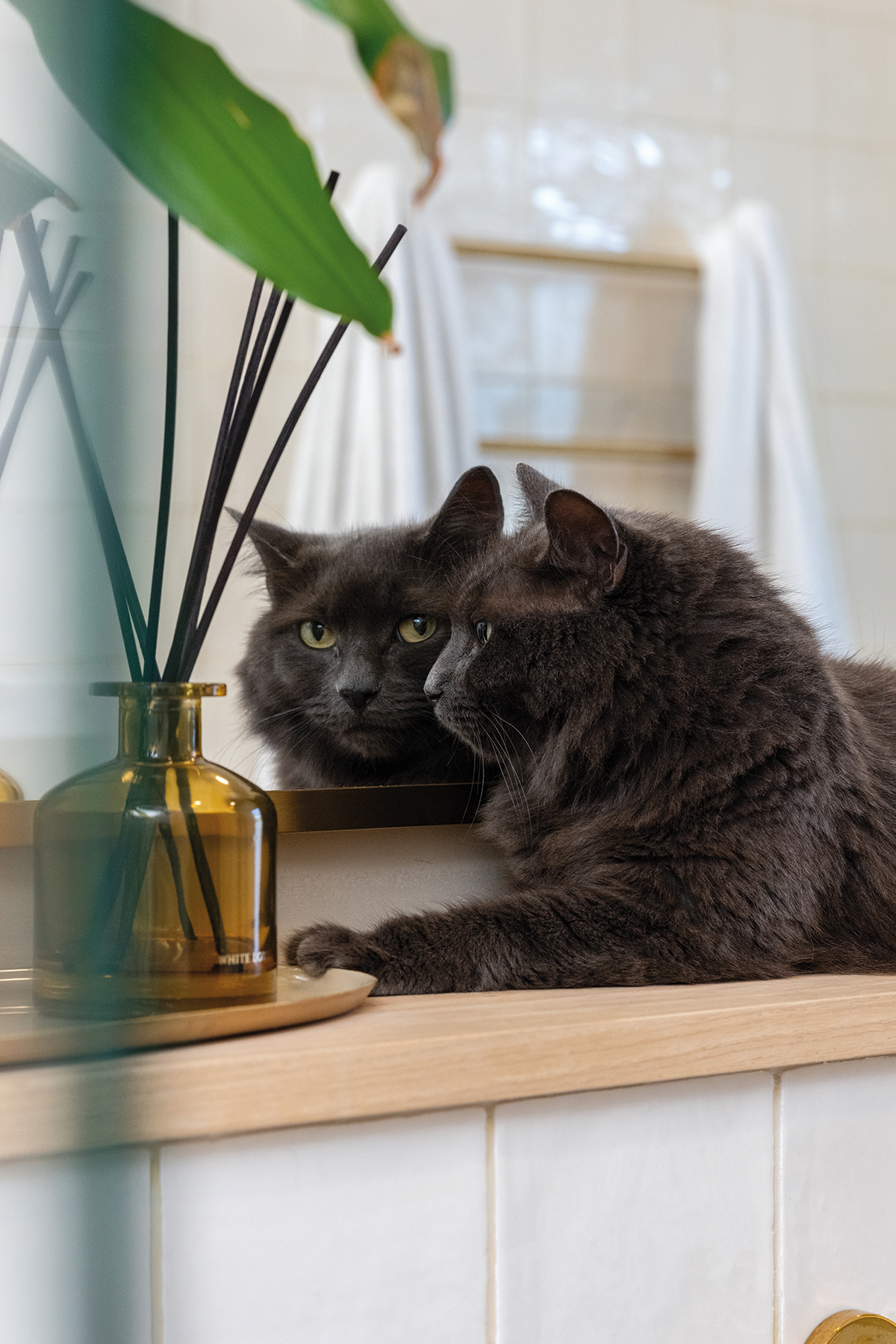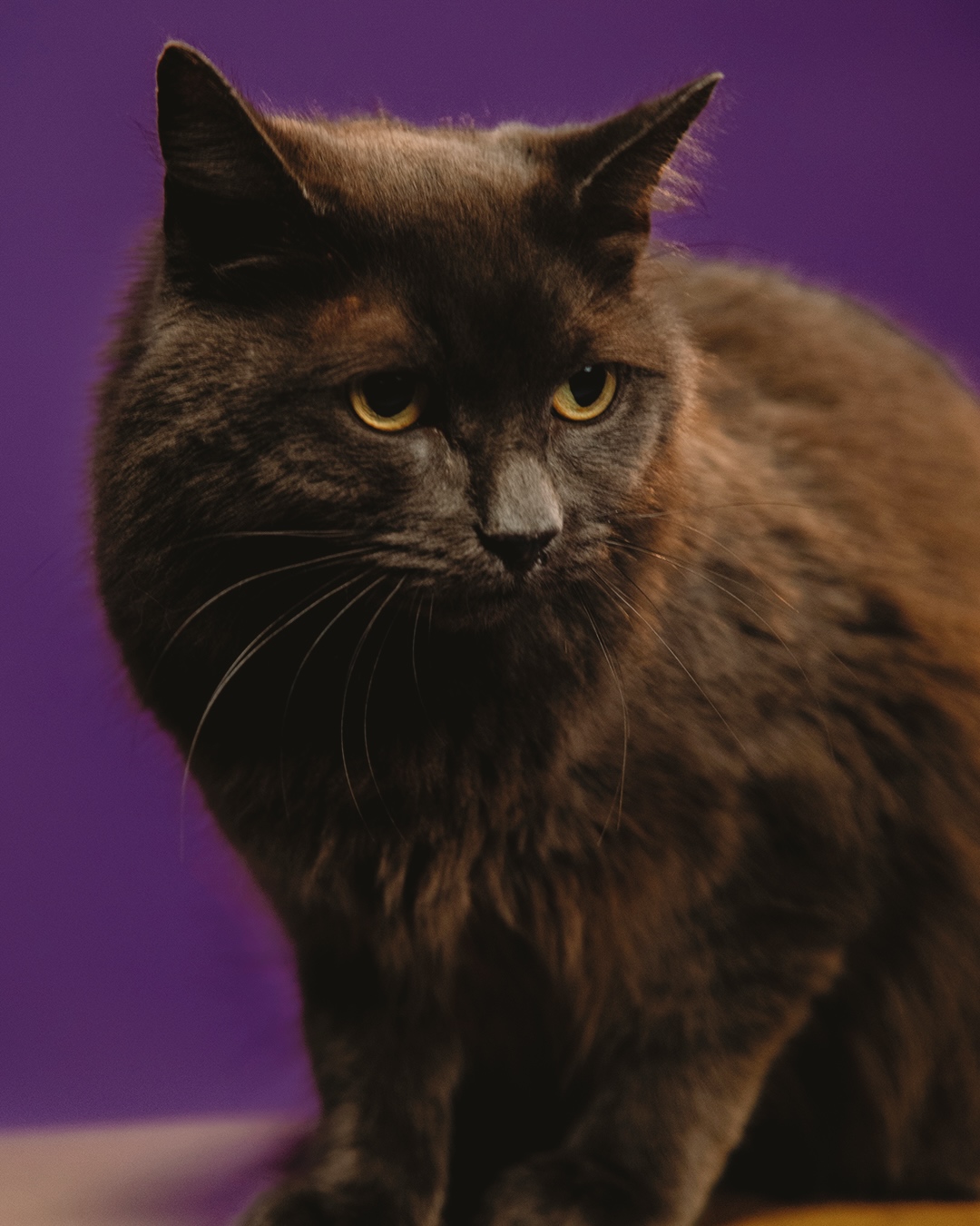 Dusty shines brightest when placed in a photo setting where she can express her natural charm. Grounded and mobile, this trained moggy cat for hire thrives in commercial settings, where she can move freely and showcase her dynamic personality.