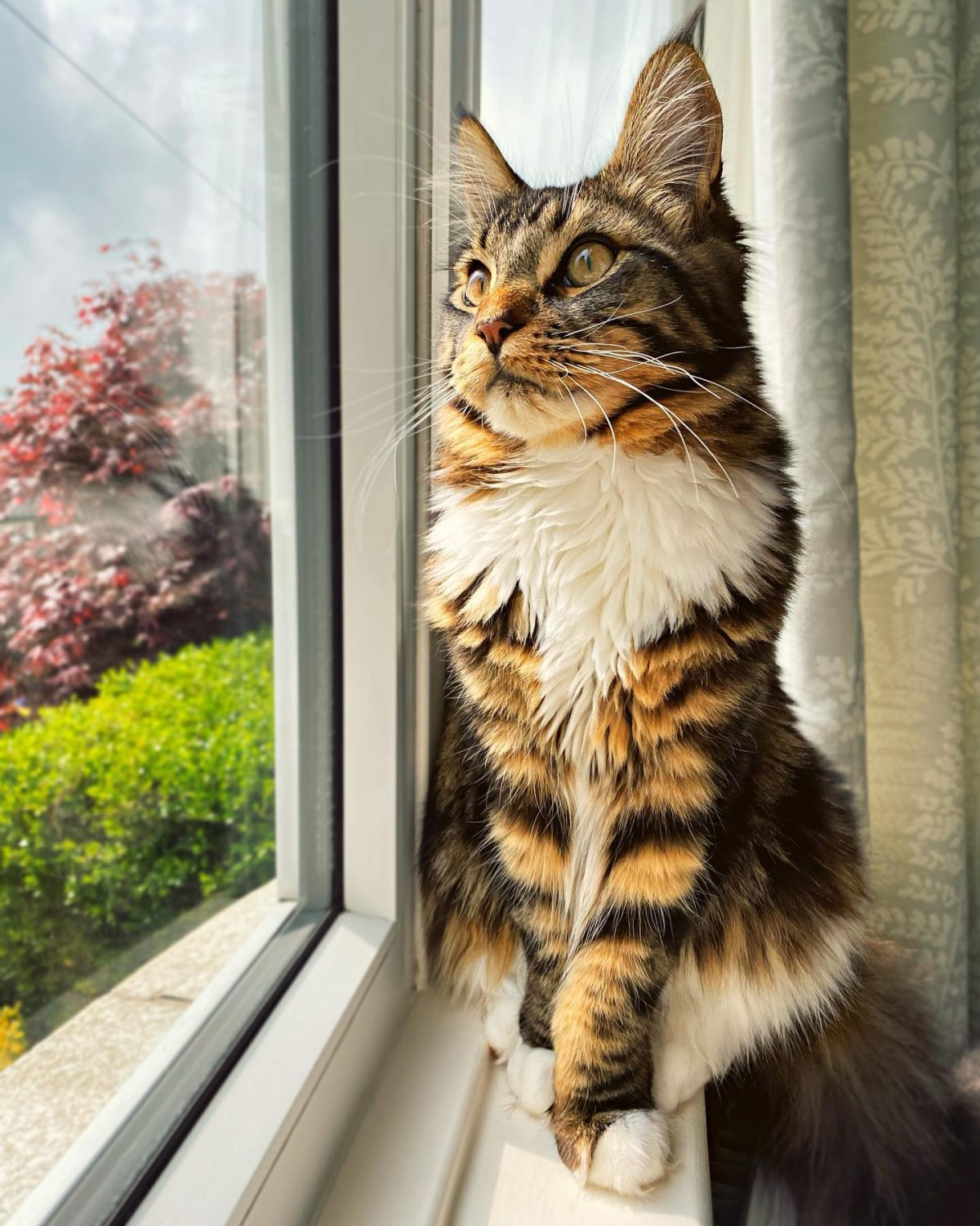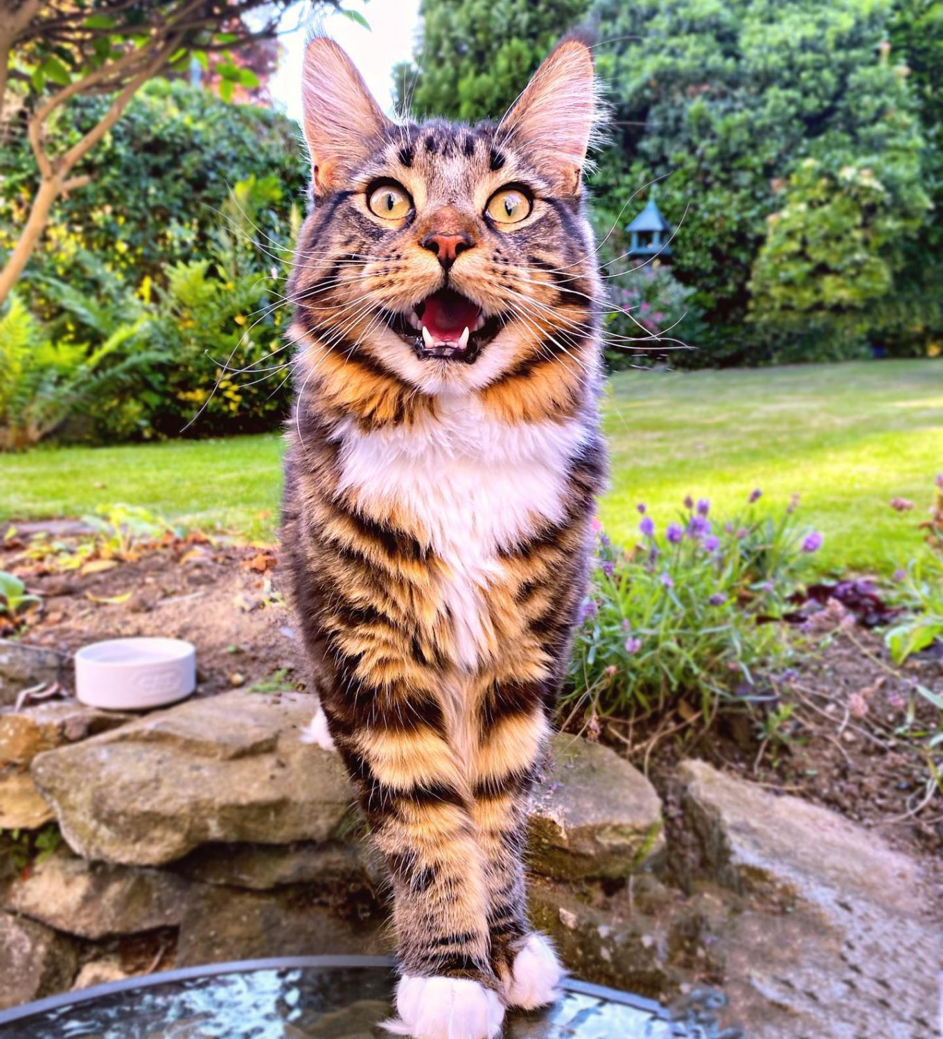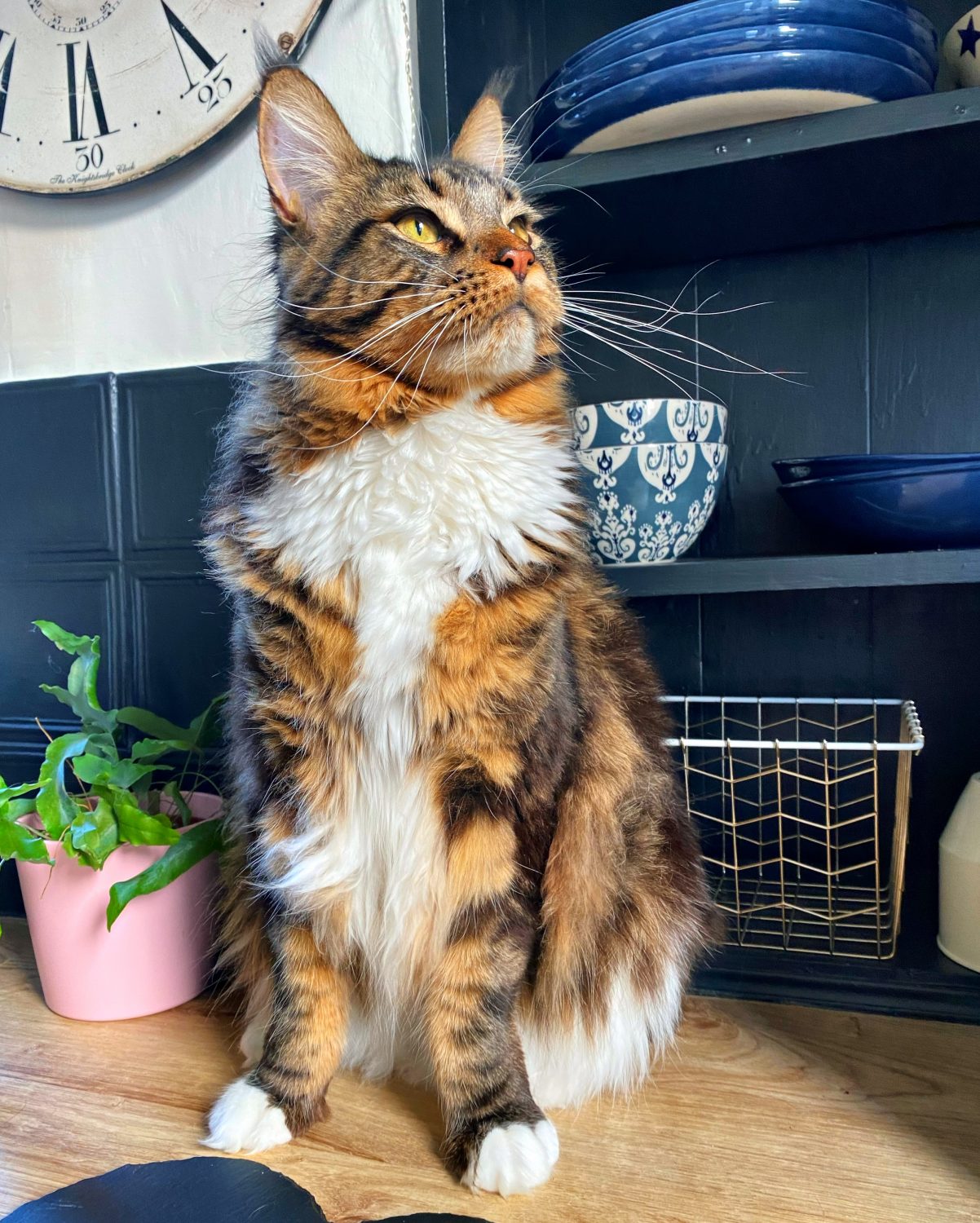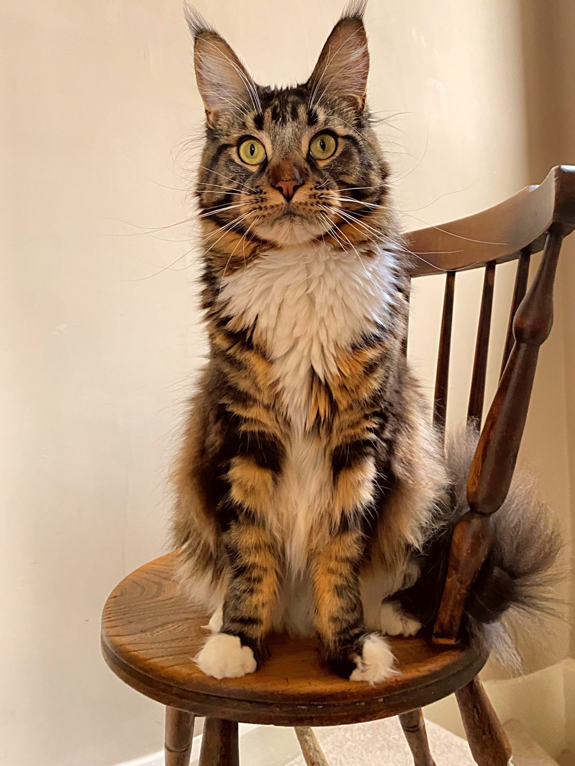 Eric’s Maine Coon heritage shines through in his unique breed characteristics. He has an unwavering fascination with water, often seen dipping his paws in and delighting in playful splashes. His dog-like demeanor sets him apart from the crowd, as he adores playing fetch, though he insists on the right toy. Eric’s playful spirit extends to a fierce game of tug-of-war, complete with playful growls reminiscent of a loyal canine companion.