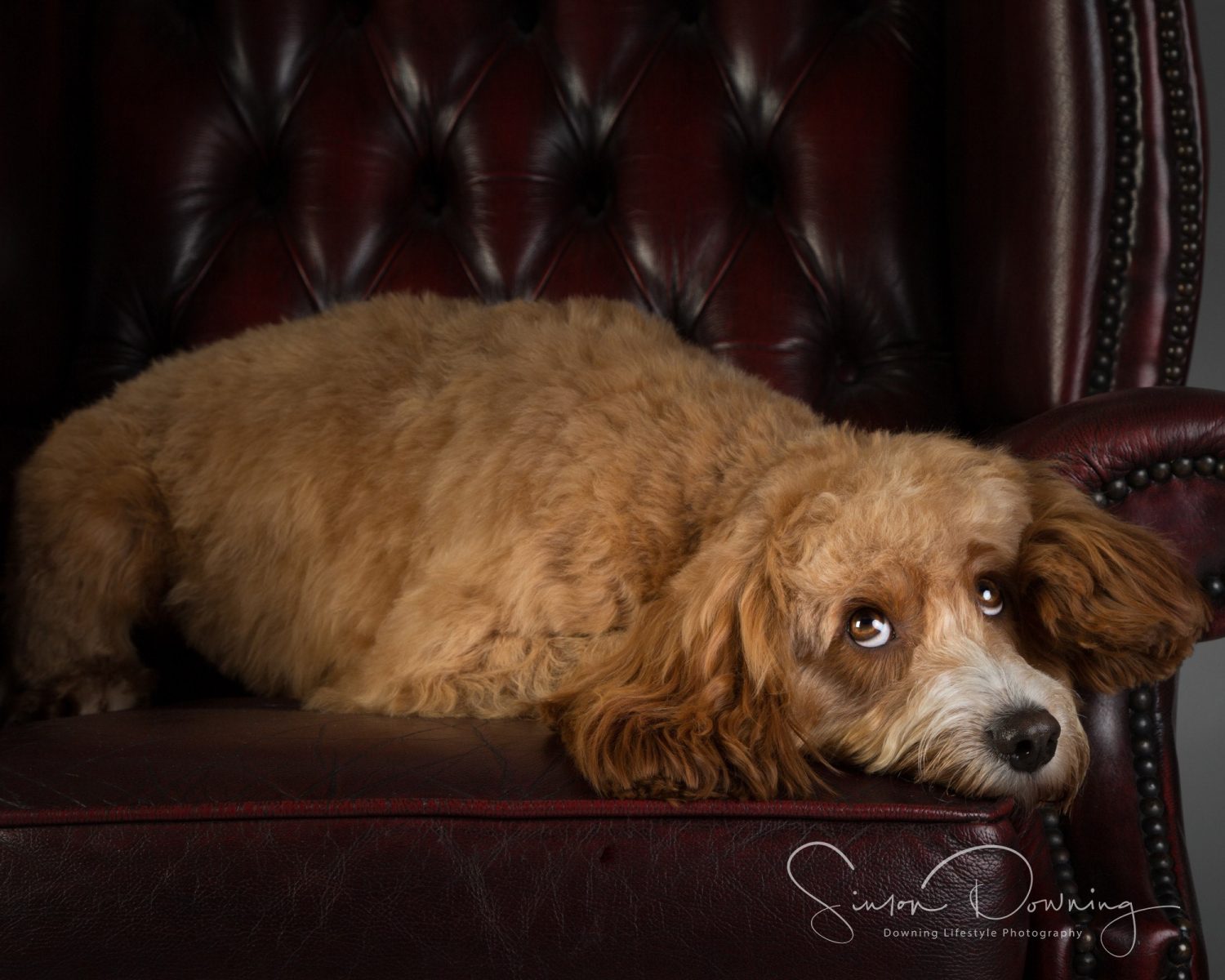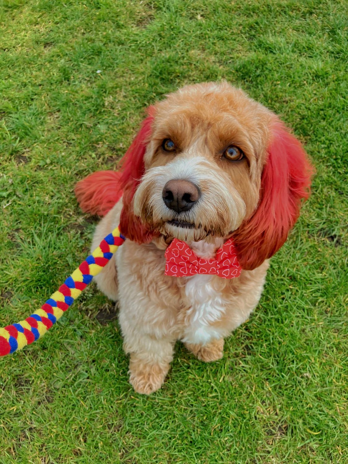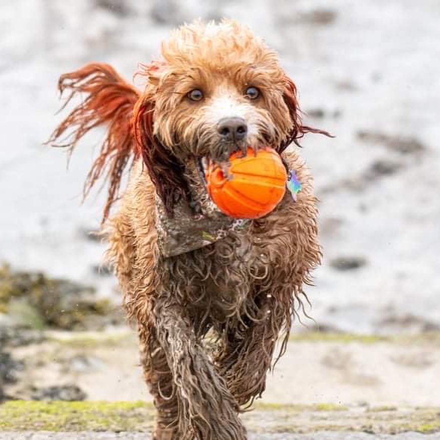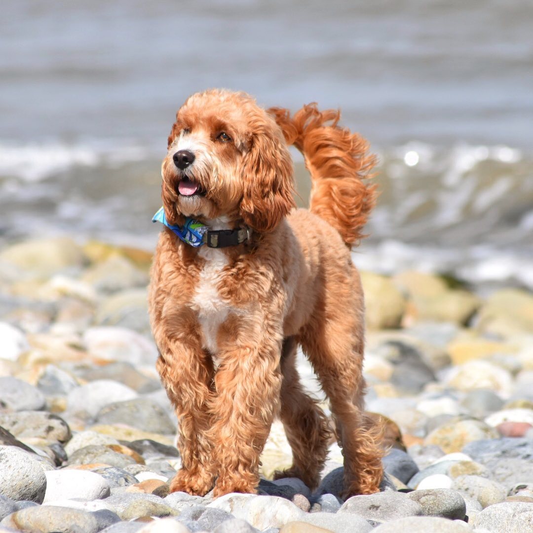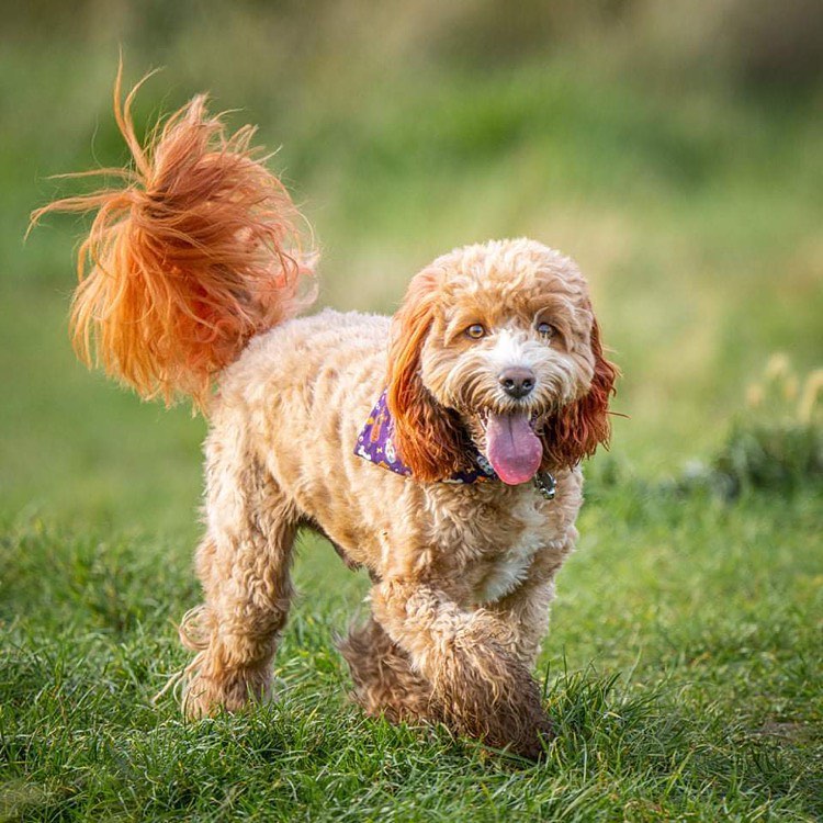 Introducing handsome Fozzie. The handsome male red and white Cockapoo dog for hire. The Cockapoo breed is a popular family breed in the UK and an excellent choice for marketing and advertising.