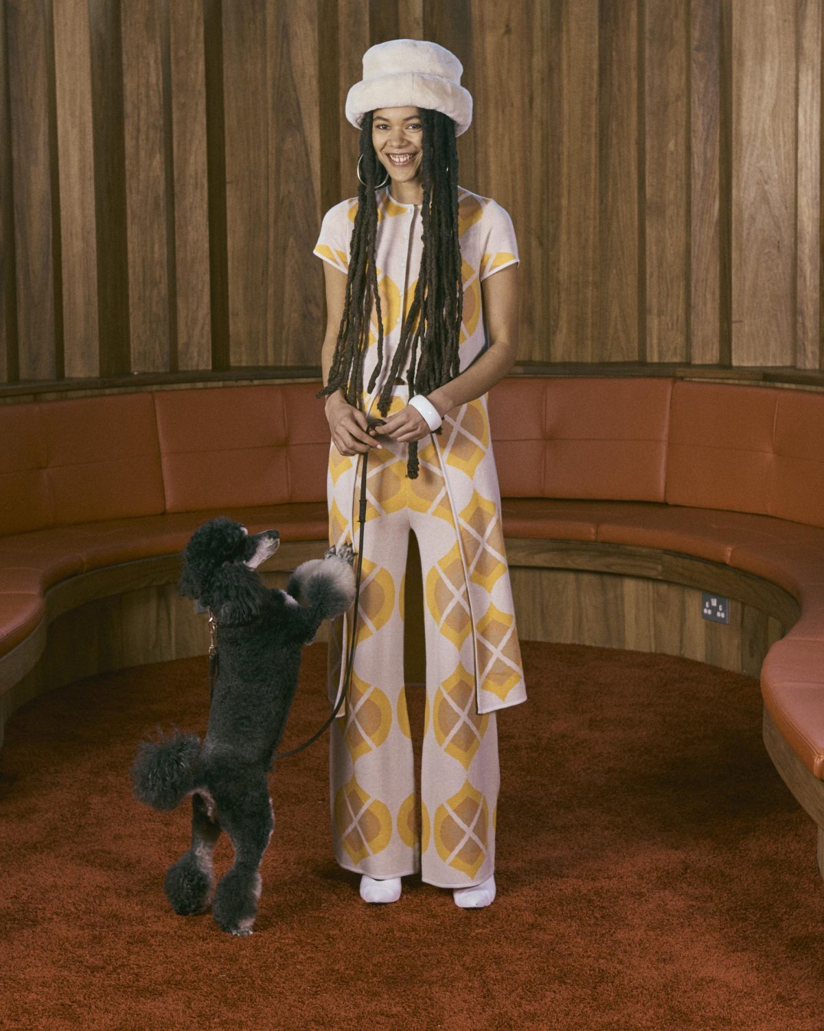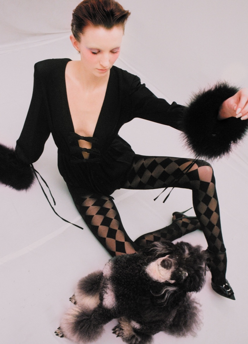 Frida modelled for Vogue Magazine, which required her to wear a hat for one shot. She wasn’t fazed by this at all. This Poodle fashionista interacted with the model well and posed beautifully. She has also worked with the fashion brand, House of Sunny, and for a dog tag brand where she interacted well with a young girl.