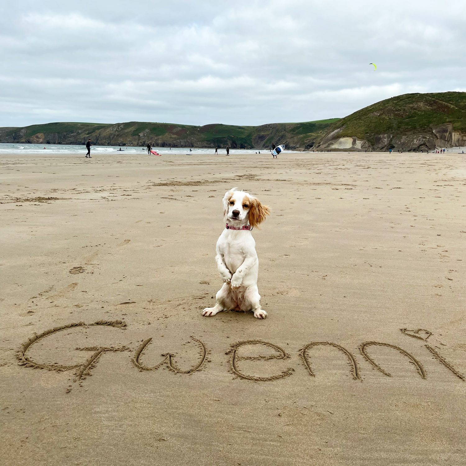 Gwenni is warm and affectionate and greets dogs, children and humans with a roll onto her back and frantic tail wagging. Overall, she loves attention and can be dressed up in clothes and accessories without an issue.