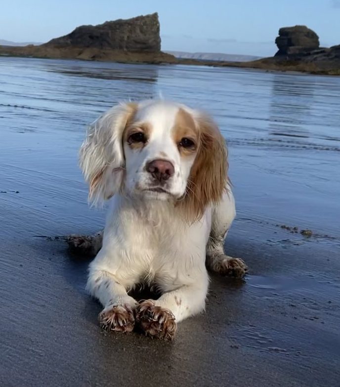 Introducing Gwenni the trick trained Cocker Spaniel dog for hire. Gwenni is from a working line of Field trial champions. She is purebred which shows in her fantastic stature and size. Her unusual markings make her stand out from the crowd with her one white and one brown ear and eye patches.