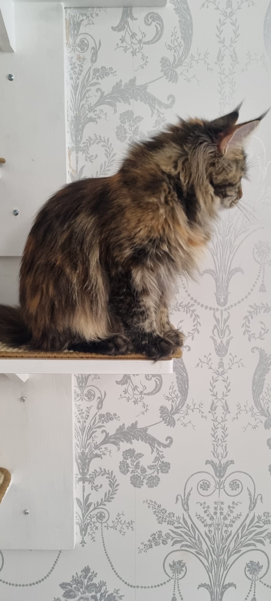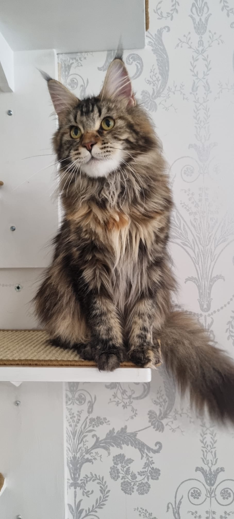 True to her breed, Lady is large, elegant, and graceful in movement. Her coat is a unique blend of rich tortoiseshell colours, making her exceptionally photogenic. Whether she’s lounging in natural light or walking sassily on a harness, she’s guaranteed to draw attention. Comfortable in both indoor studios and outdoor locations, Lady is calm and composed in a variety of settings.