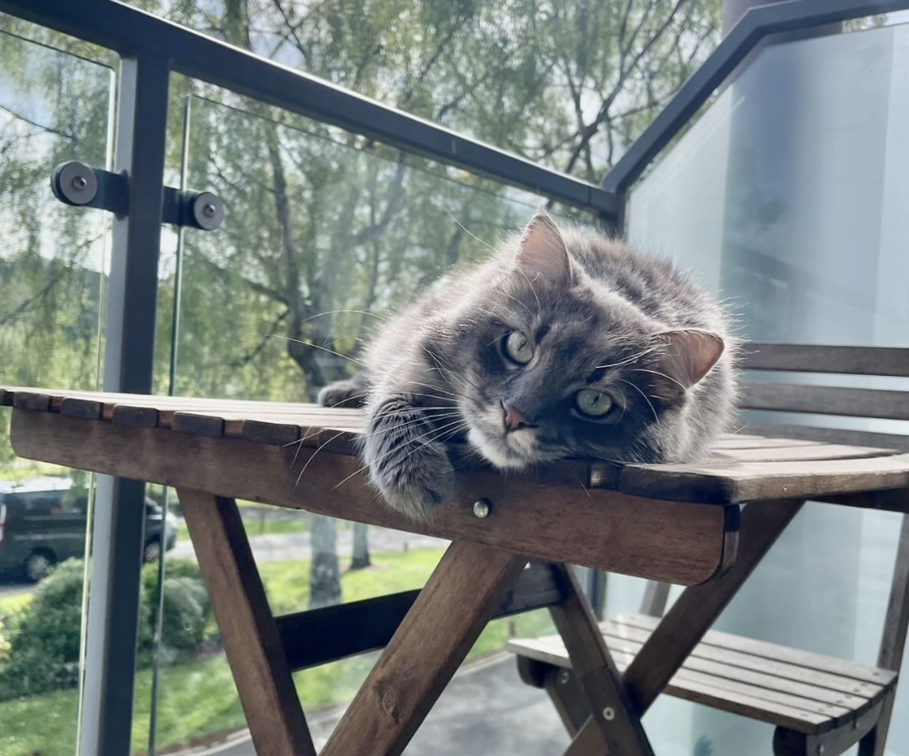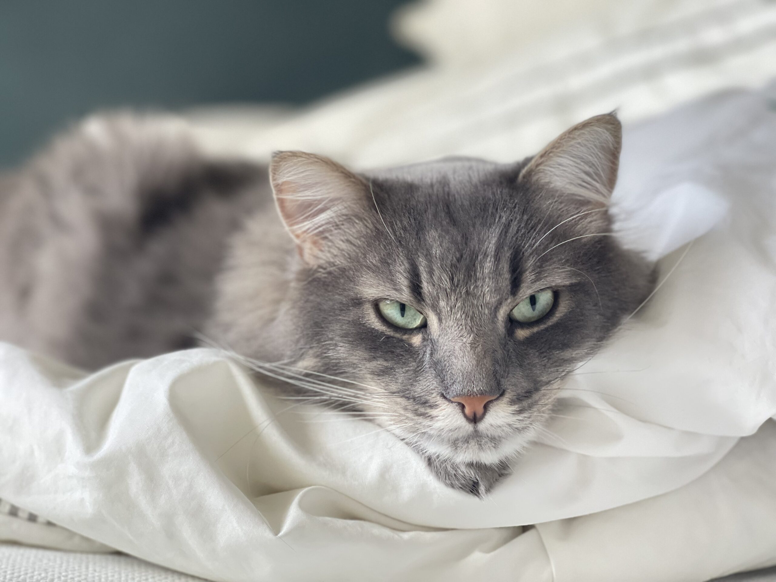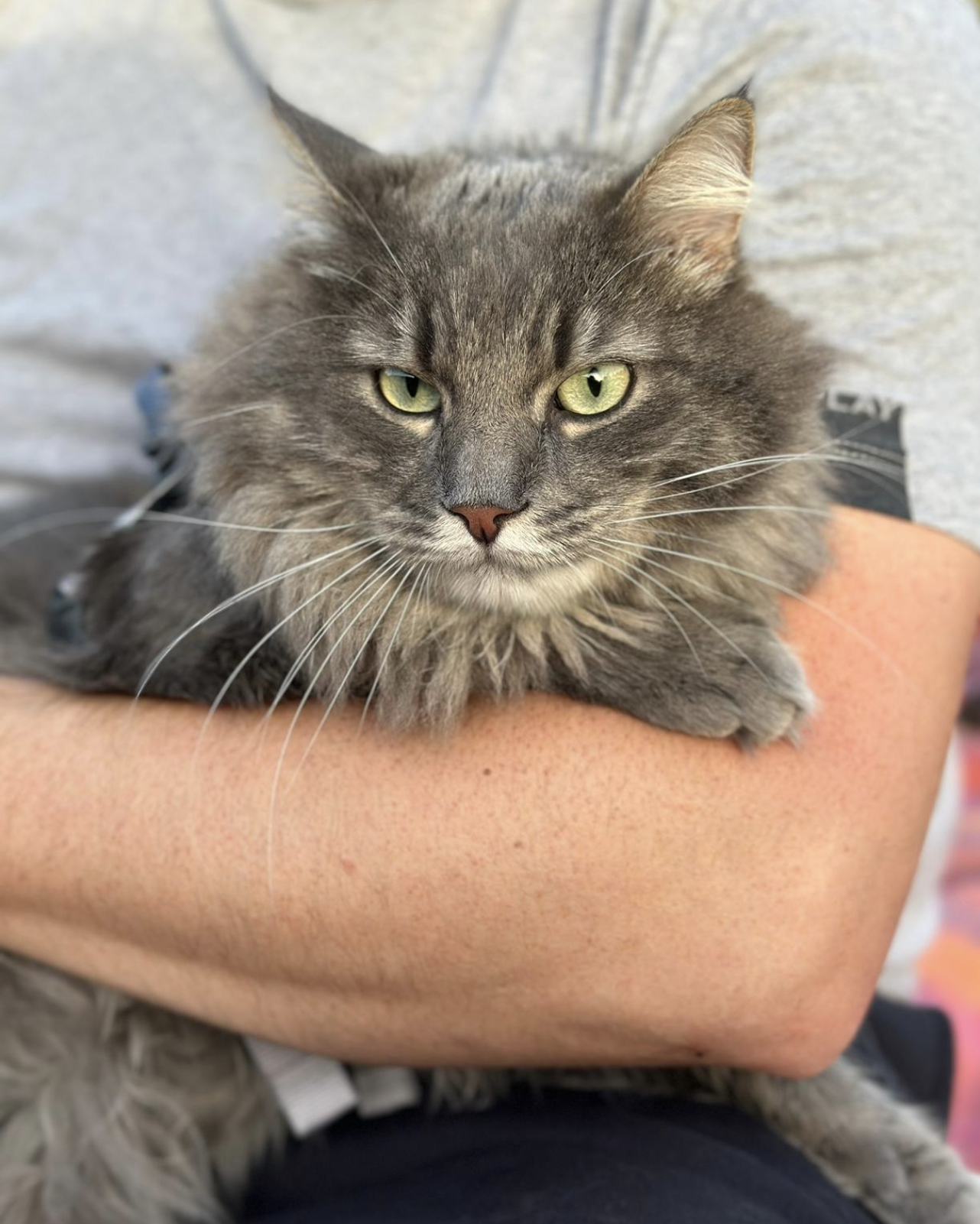 Loki is a striking mixed-breed cat for hire with silky, smoky grey fur and a touch of white on his tail and belly. A cross between a Siamese and a European cat, he has the best of both worlds—graceful, affectionate, and full of charm. Loki is loving, gentle, and incredibly social, making him an ideal companion for anyone who craves a cuddly and playful pet.