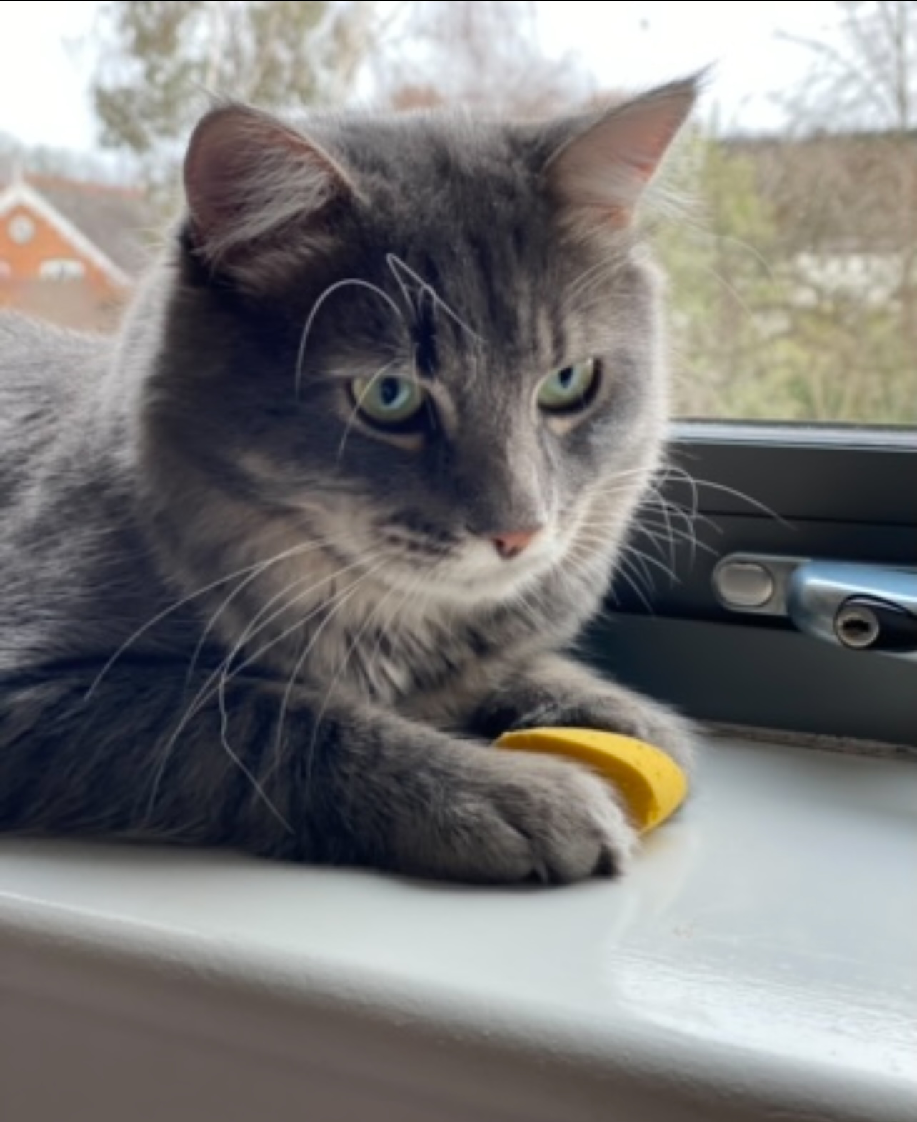 This curious, social mixed-breed cat for hire is confident around both children and dogs, adjusting seamlessly to life with other animals in the house. He’s toilet trained and adapts well to new situations, always keeping a calm and friendly demeanour. Loki’s agility shines when he’s playing with his laser toy or chasing after his sponges, showcasing his quick reflexes and intelligence.