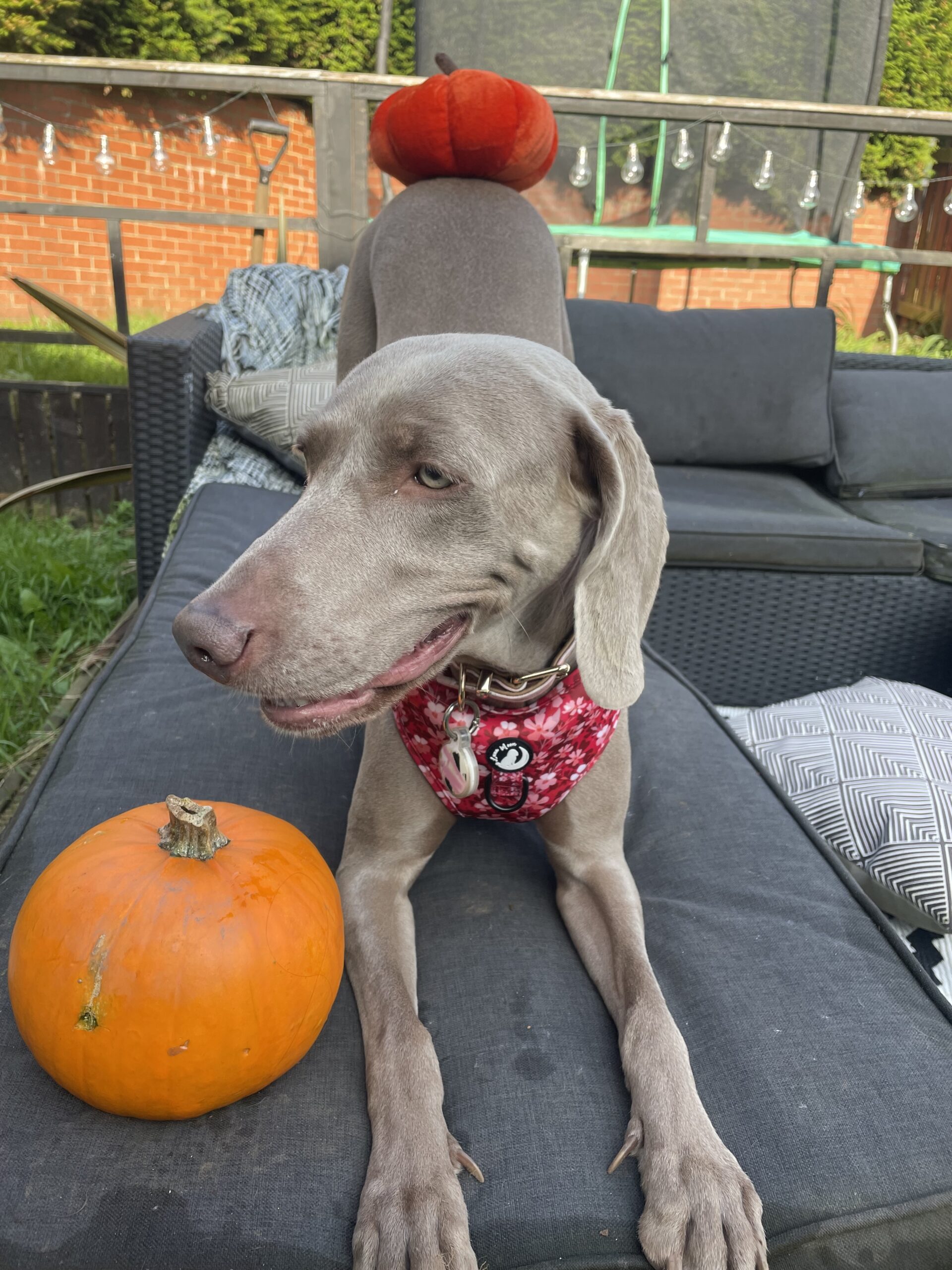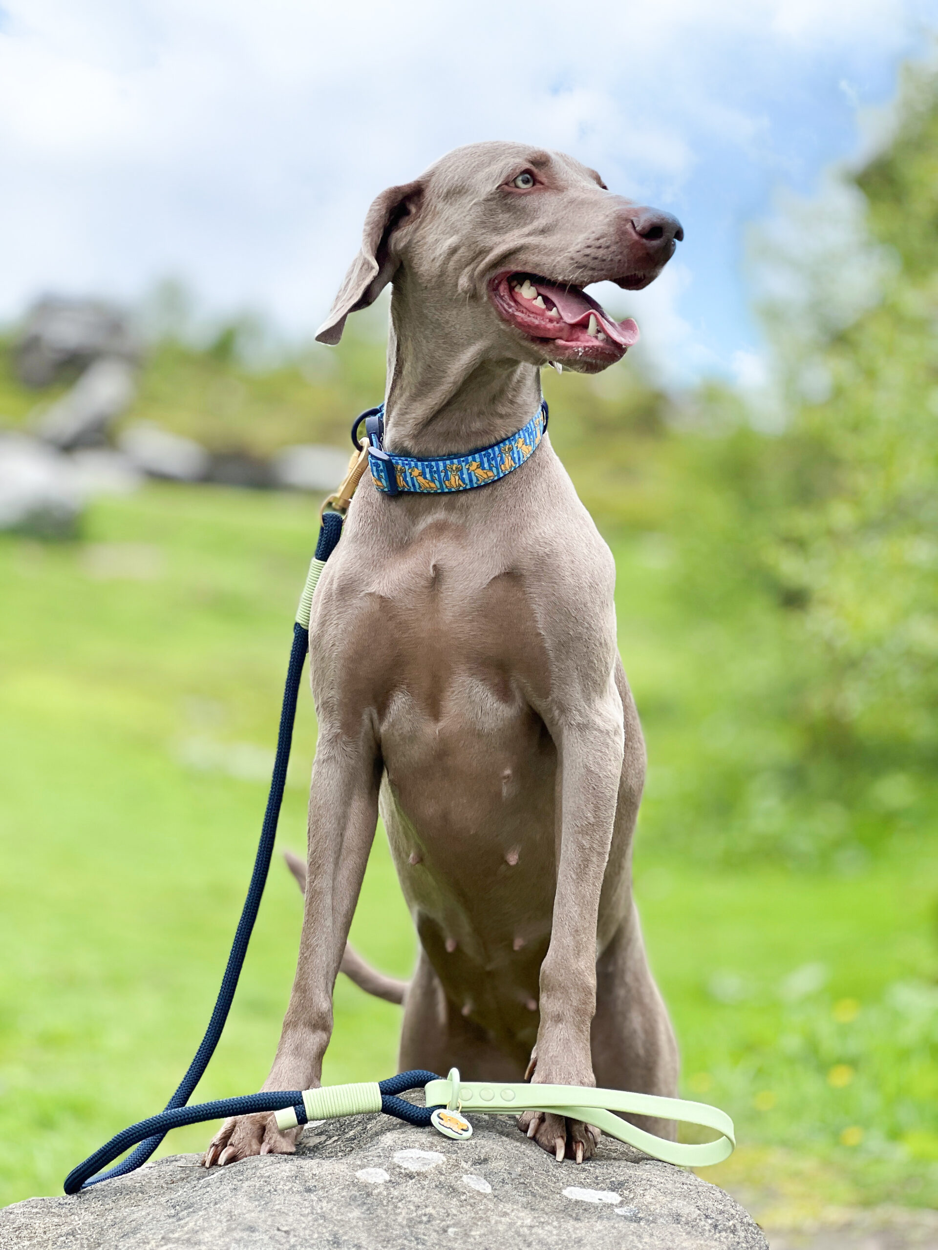 Luna is a stunning KC-registered Weimaraner for hire with a big personality and an even bigger heart. She is full of energy, charm, and confidence. Always eager to meet new people, Luna thrives in social settings and loves being the centre of attention. Her unique “Batman” marking on her chest has earned her the nickname “Super Dog,” and she certainly lives up to the title!