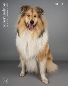 Meet Tuppence, the Rough Collie available for hire as a talented dog model. With her Blue Merle coat and an extensive list of pet talents, she’s an excellent choice for specialized pet actor roles in media projects.